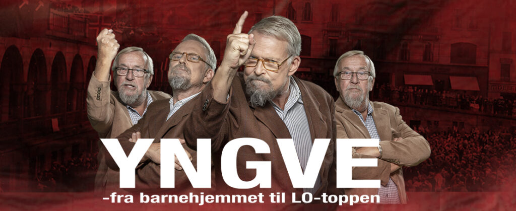 Produsert forestillingen om Yngve Hågensen for Arbeiderbevegelsens Kulturnettverk. (Manus Jens O. Simensen) I front på scenen Dennis Storhøi og Annette Hoff.